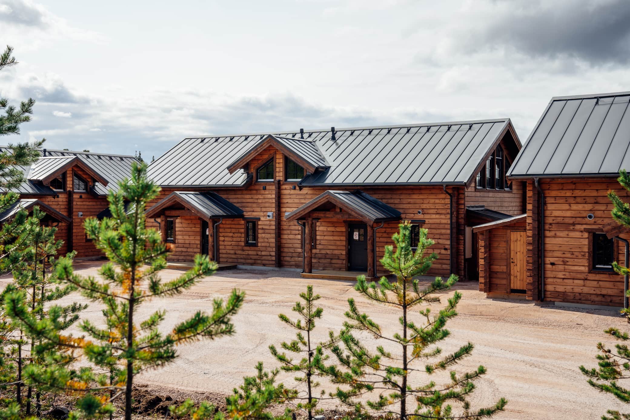 Fjällräven ligger i ett lugnt skogsläge i Idre Bergsby. Tallskogen ramar in huset och dagarna blir naturligt stillsamma — en plats att landa i, sommar som vinter.