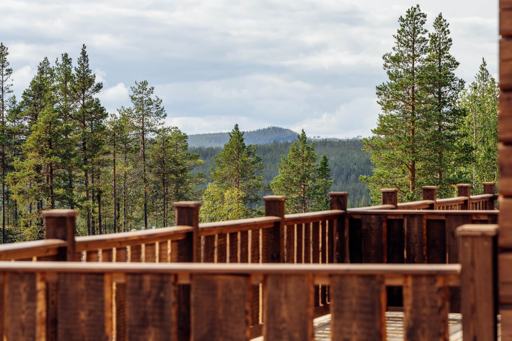 138 kvm fördelat på två plan. Storstugan med dubbel takhöjd och steneldstad är husets centrum — naturlig samlingsplats för matlagning tillsammans efter en lång dag ute. På entréplan finns två sovrum, badrum och bastu. En trappa upp ligger ytterligare två sovrum, ett andra badrum och ett allrum med tv och divansoffa, där barn kan vara nära familjen men ha sitt eget. Den stora altanen i sydväst blir en förlängning av vardagsrummet.